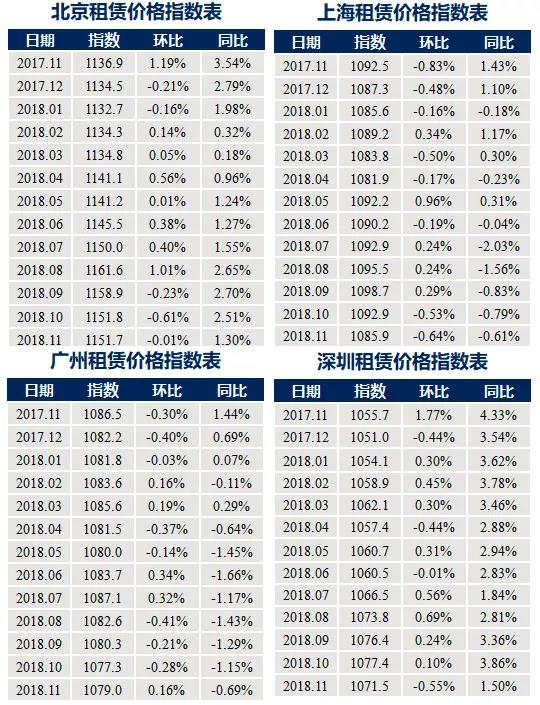 (来源:中国房地产测评中心《2018年11月中国城市住房租赁价格指数报告》)