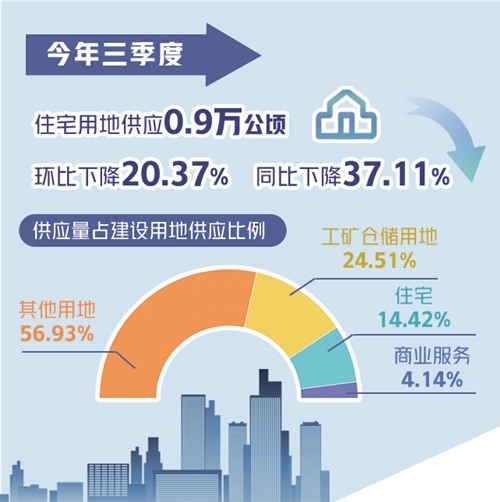中国国土勘测规划院新近发布的全国主要城市地价监测报告显示,三季度住宅用地供应0.9万公顷,环比下降20.37%,同比下降37.11%,住宅用地供应同比增速为2015年以来单季最低。