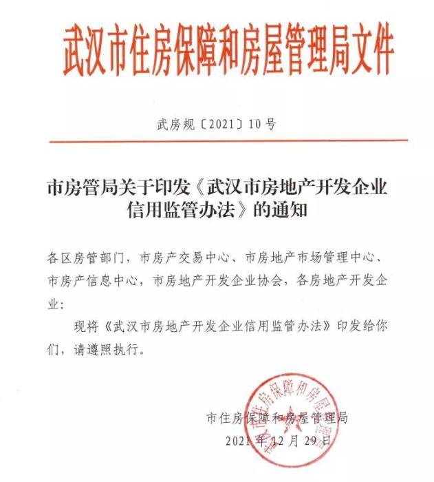 中新财经1月4日电 据“湖北发布”微信公众号消息,2月1日起《武汉市房地产开发企业信用监管办法》将实施。与原办法相比,新办法增加了18项信用信息记分标准。文章称,武汉将进一步加强对房地产开发企业的信用监管力度。