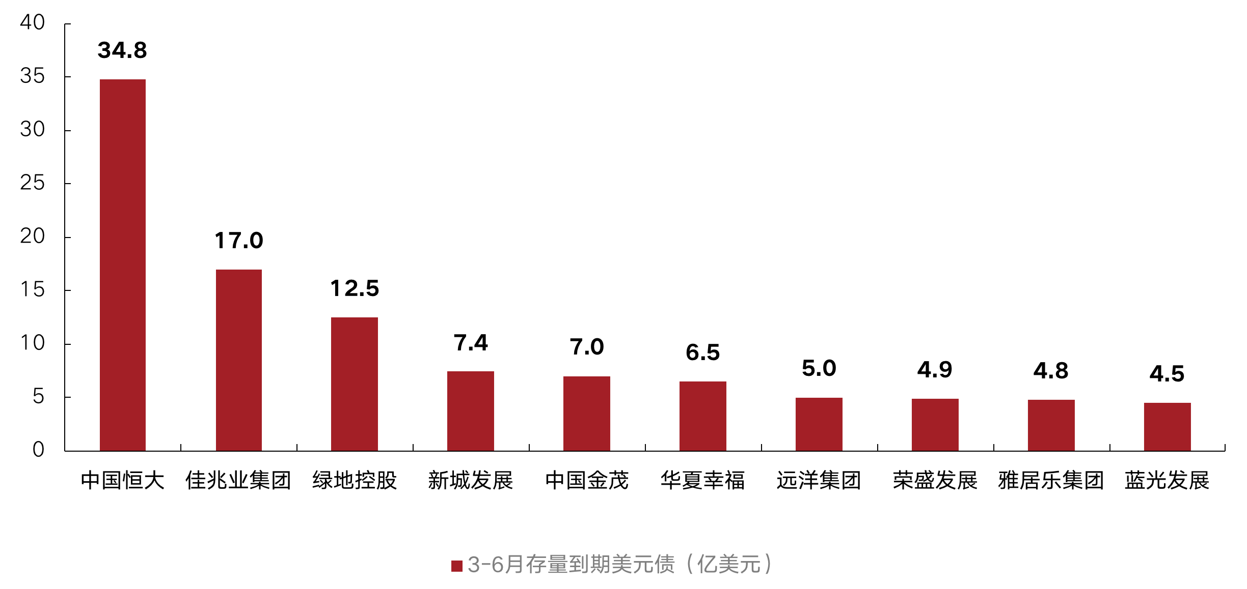 图2:2022年3-6月美元债存量到期债规模最大前十房企