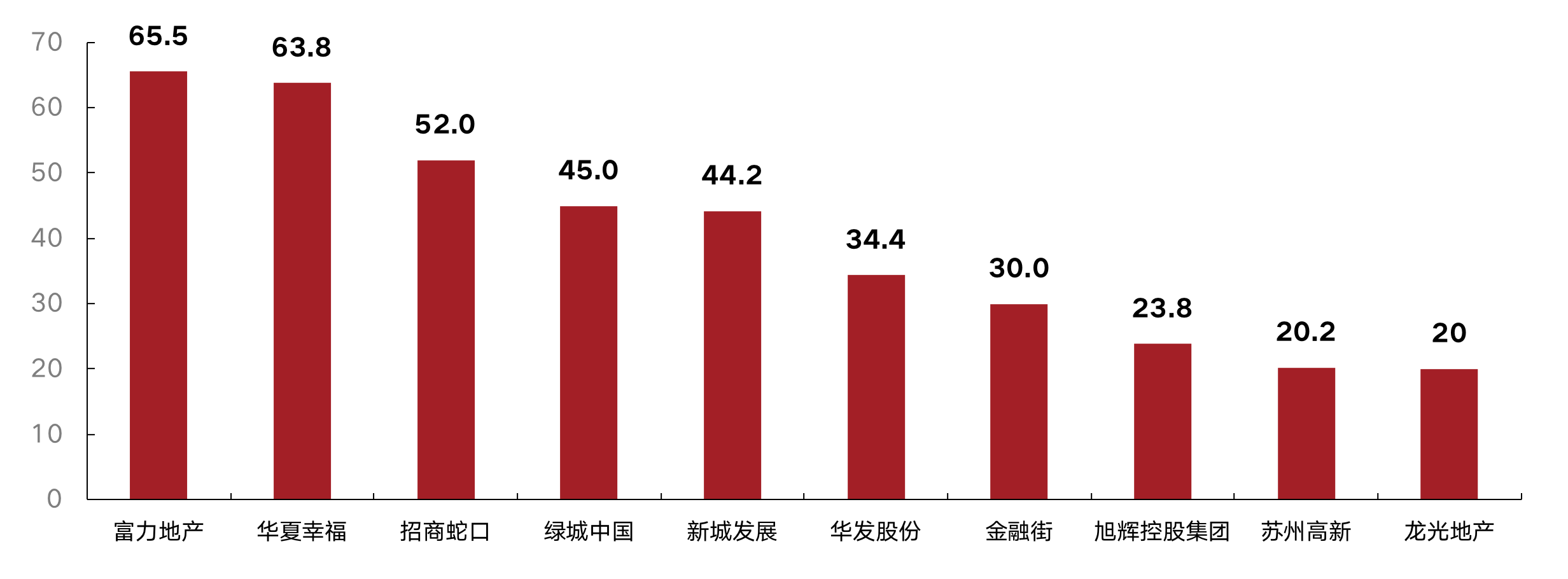 从人民币债存量到期债规模来看,富力地产、华夏幸福和招商蛇口到期规模居前列,分别为65.5亿元、63.8亿元和52亿元。